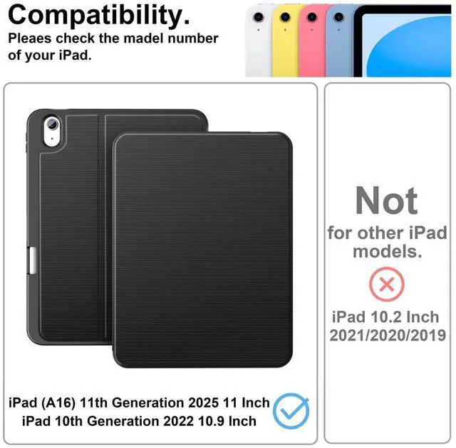 Type: Specially designed for New iPad (A16) 11th/10th Generation 2025/2022 11& 10.9 inch, Please check the model number of your tablet again before your purchase.