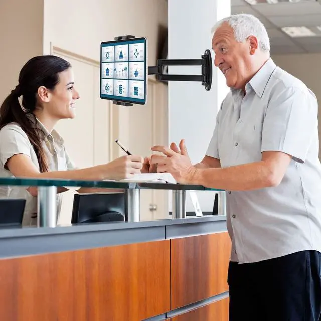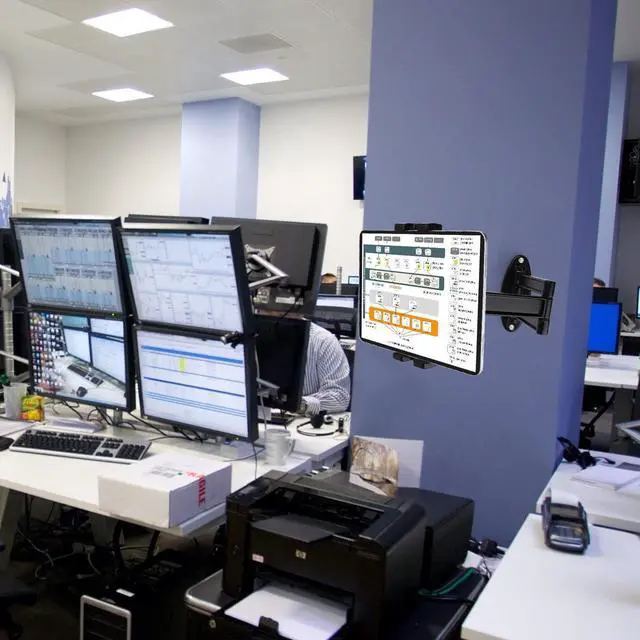 ^^ Mount Anywhere: Heavy-duty aluminum alloy material arm with tablet is suitable for these places: classroom, conference room, warehouse, healthcare facilities, kitchen, office, restaurant, supermarket, gyms, food shop and kiosk etc, the friendly mount arm and clamp are convenience for you.