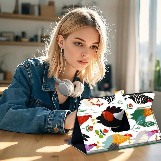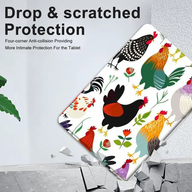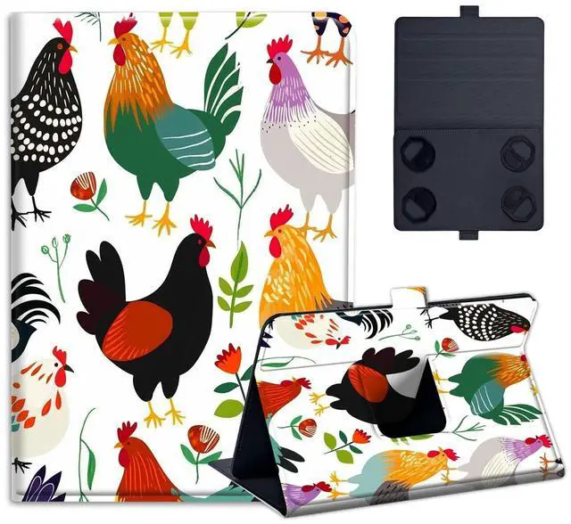 KUJKBFWJ Universal 9",9.7",10.1",10.2",10.5" Tablet Case,Protective Stand Folio Case for 9-10.5 Inch Tablet, Cover for iPad, Samsung, Others, Colorful Rooster Chickens