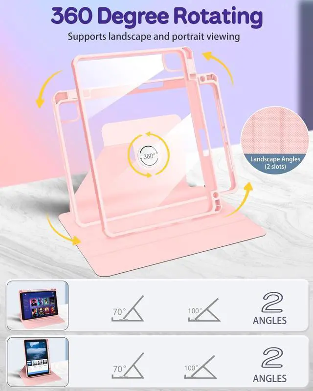 ^^ 360 Rotating Stand: This for iPad Pro 13 Inch case 2024 with an functional rotating stand design, supporting your devices to switch between landscape and portrait orientations for all-around viewing and use.