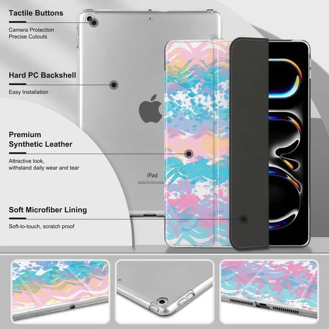 Specifically engineered for 10.2 -inch 2021 iPad 9th Generation (A2602/A2603/A2604/A2605), 2020 8th Generation (A2270/A2428/A2429/A2430), and 2019 7th Generation (A2197/A2200/A2198). Not compatible with other iPad models ^^ Magnetic protective cover automatically wakes iPad 10.2 when open and hibernates when closed to conserve power. Tri-fold stand provides the perfect viewing and typing angle ^^ The translucent frosted back cover lets you see the Apple icon in your favorite color, while the front cover combines a premium PU exterior, microfiber lining, and soft TPU for excellent scratch, impact, and drop protection to ensure long-lasting protection for the 10.2 -inch iPad ^^ Precise cutouts for all ports and buttons make it easy to access all the features of 10.2 iPad without having to remove the case too often.