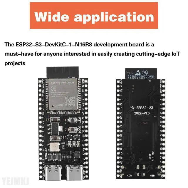 ^^ [Smart functions]: ESP32-S3-DevKitC-1 has panel Bluetooth, 2.4GH z Dual-Mode WiFi, which can be used for smart home automation systems to industrial monitoring equipment. The ESP WROOM 32 S3 N16R8 development board can be used in a wide range of applications
