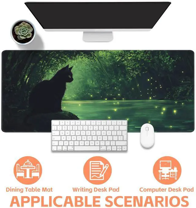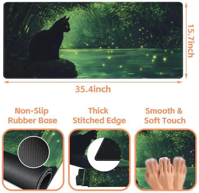 NIYLYNSYN Large Mouse Pad Black Cat Extended Gaming Keyboard Desk Mat Non-Slip Rubber with Stitched Edge Desk Pad Suitable for Office Home Desktop Decoration (35.4 x 15.7 Inches)