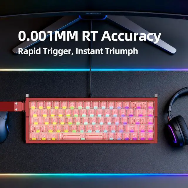 ^^ 0.125MS Low Latency: IROK MG68Plus latency can reach 0.125 ms, in the use of the process of near-zero perceptual delay, at once, any key position can be replaced with an adapted magnetic switch, a variety of switch mixed compatibility, to bring you an excellent gaming experience, is the perfect choice for video game enthusiasts ^^ KME FunctionThe KME Quick Tap Mode, similar to the SODC and ST functions, allows the keyboard to prioritize the last input between two selected keys without releasing the previous key, thus improving response time ^^ Advanced