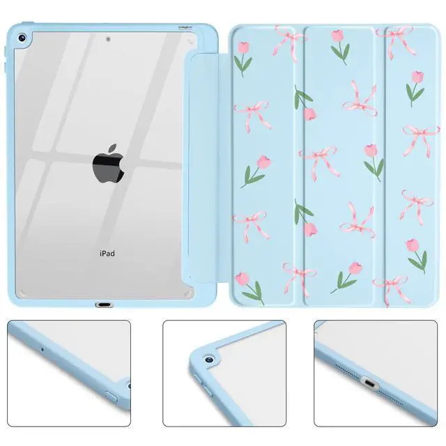 Full Protection & Trifold Stand: Hardshell back cover with flexible TPU bumper protects your iPad from shocks, drops and impacts. The triple adjustable stand allows the viewing Angle of the Pad to be adjusted at will for a variety of use cases ^^