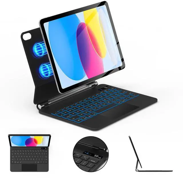 ^^ Multi-finger Touchpad: The iPad keyboard features a responsive and reliable touchpad that allows you to use the entire surface to work and perform multi-touch gestures. Use multi-finger gesture controls such as swipe, scroll, switch apps, and more to navigate your iPad in a whole new way with 3.941. 77 inches high-precision trackpad. Instead of typing on a cramped screen, you can edit documents, navigate applications, and build presentations with unmatched speed, precision and accuracy. ^^ 7-Color Backlight and