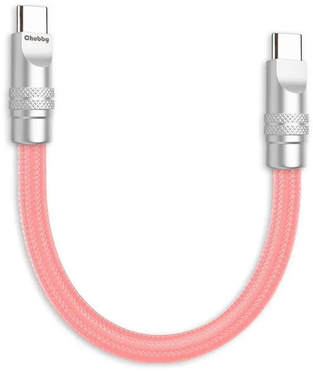 chubbycable Cute Chubby 240W Short USB C Cable Power Bank Fast Charging Cable Nylon Braided Charger Cord Compatible with iPhone 17-15 Series iPad, Pink, Type-C to Type-C, 0.82FT