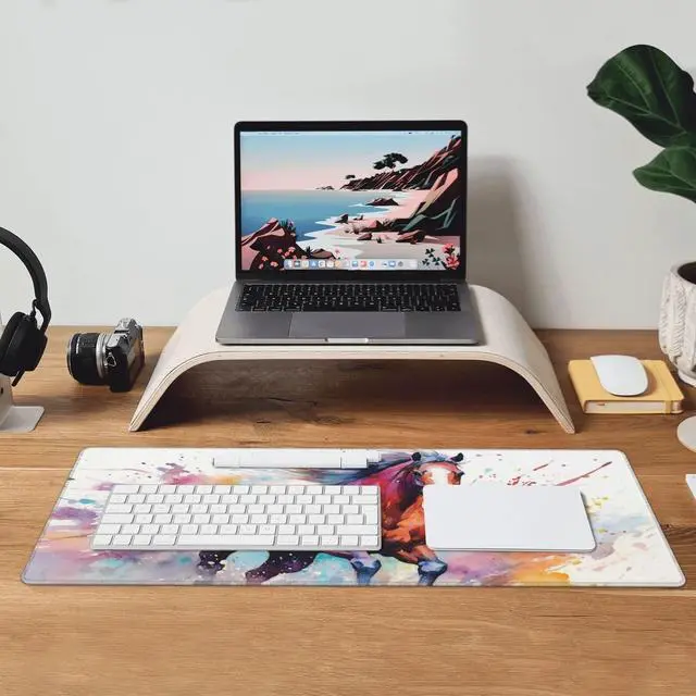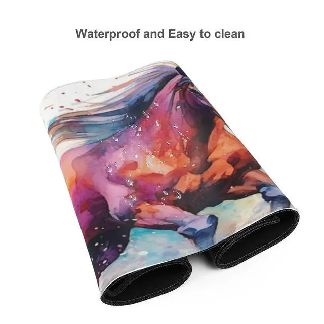 Famame Laptop Mouse Pad Abstract Splash Colorful Horse Desk Mat with Stitched Edges 31.5X 11.8 inch Non-Slip Large Keyboard Rubber Writing Table Mat for Office Home