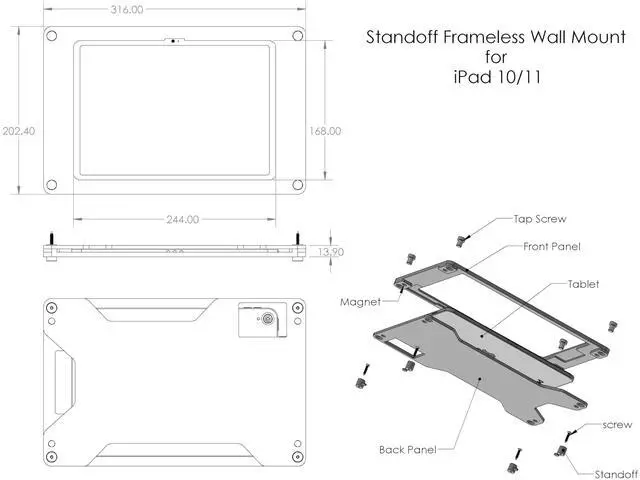 TABcare Acrylic Wall Mount Floating Frameless Display with Metal Standoff for iPad Tablet