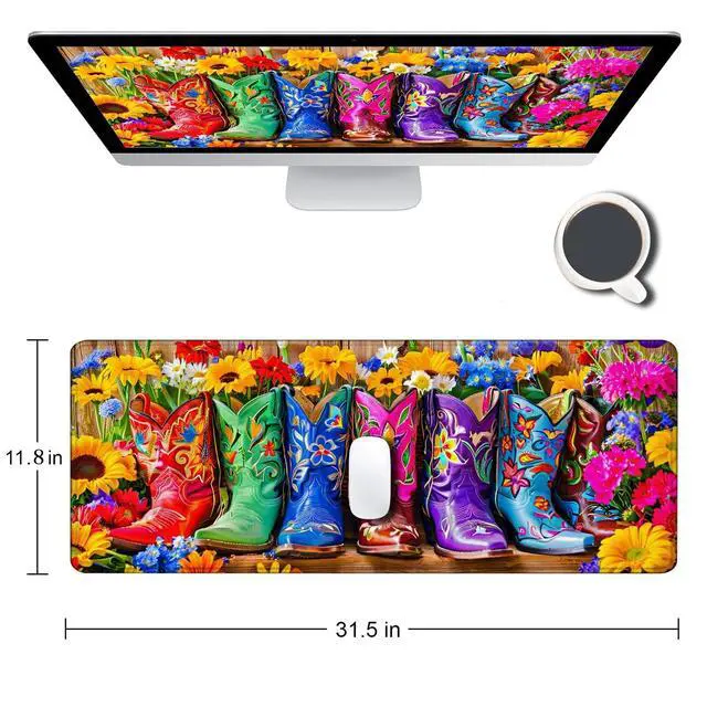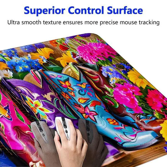 Large Gaming Mouse pad,Boots and Flowers Anti Slip Rubber Base Mouse pad, Suitable for Computer, Laptop, Office Desk Accessories