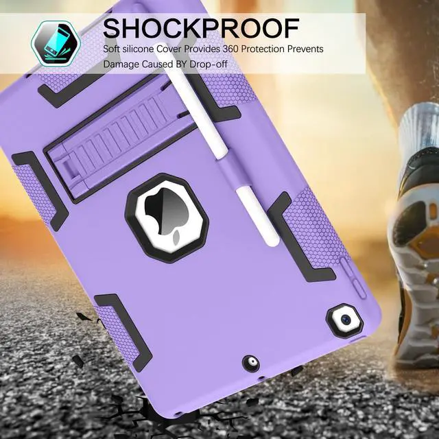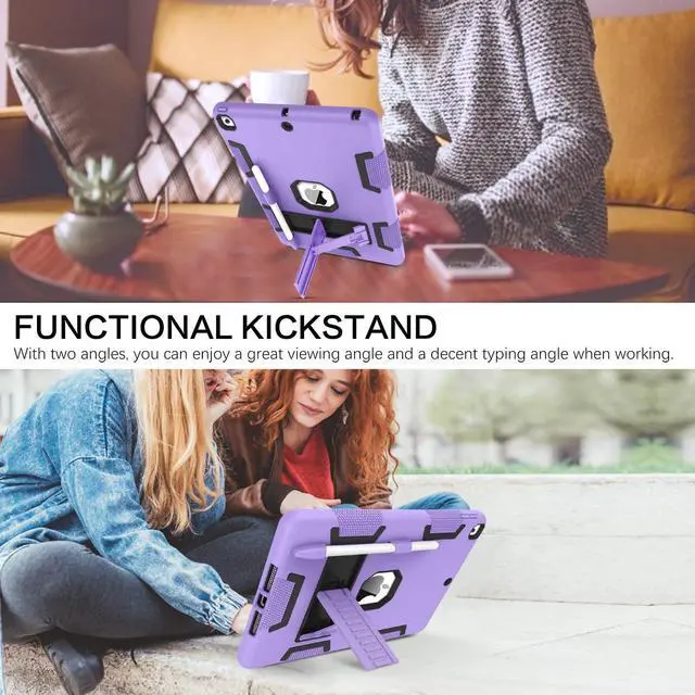(ATTENTION: NO Screen Protector Included) ^^ Advanced 3 Layer ProtectionPremium hybrid hard Polycarbonate (PC) + soft Silicone rubber + open front hard Polycarbonate (PC) materials withstands drop, bump and shock with four corner cushioning for protection, safe for the Kids. ^^ Built-in Pencil Holder & Kickstand this shockproof tablet case has a built-in sturdy kickstand, you can adjust for optimal viewing and typing positions based on your needs. Designed with a pencil holder easily to carry your Apple pencil with your device.