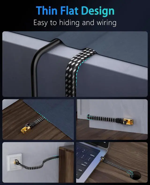 Ethernet Cable: Cat8 rj45 cable adopts a flat and thin design to avoid tangles and save space ^^