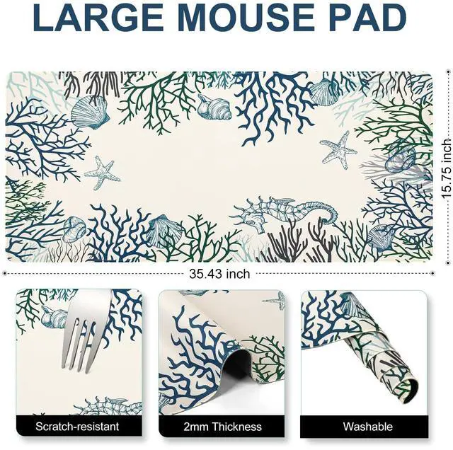 Pad Size: XXL mouse pad measures 35.4" x 15.7", this ocean coral desktop mat provides ample space for your mouse, gaming keyboard, and other desktop essentials. Its large size of desk cover mat keeps your workspace neat and organized, perfect for both gaming and office use ^^