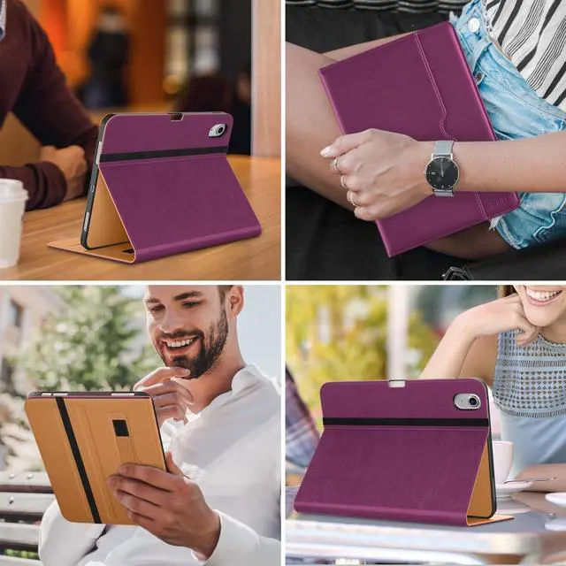 Number: A2588/A2589/A2591/A2316/A2324/A2325/A2072). Not compatible with any other iPad model ^^ Unique Design - Built-in hand strap for one handed operation of your iPad Air 11 inch/5th/4th, multiple horizontal bracket angles for comfortable watching movie or typing, free your hands ^^ Magnetic Smart Cover - Auto Wakes/Sleep, automatically wakes or puts your tablet to sleep when the lid is opened and closed external elastic band enhances magnetic closure ^^ Multi Function - Features front document card pocket to keep notes, cash, cards. Built-in Pencil holder support your Apple Pencil (USB-C) or Apple Pencil 2nd gen charging.