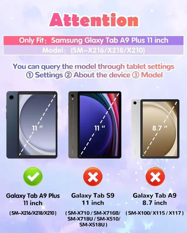 Compatibility: This case is only compatible with Samsung Galaxy Tab A9 Plus 11 Inch