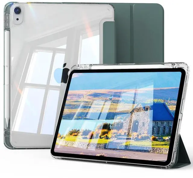 KVTVOU for iPad (A16) 11th Generation Case 11 Inch 2025, iPad 10th Generation Case 10.9 Inch 2022 with Pencil Holder, Shockproof Cover with Clear Back Shell & Soft TPU Transparent Edge, Dark Green