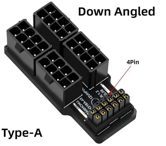 PCI-SIG 12VHPWR H+, including 12 pin power supply terminal, and 4 pin signal terminal on the side, Capable of delivering up to 600W of power. ^^ The new standard formally introduces PCIe 5.0 graphics card support with a new 12-pin 12VHPWR connector that can deliver up to 600W. ^^ The new connector is set to debut with Nvidia RTX-40 and AMD RDNA 3 cards. ^^ 12VHPWR ATX 3.0 PCI-E 5.0 Power Modular Adapter to Four ATX 8P Down Angled 90 Degree for 4080 5090TI 16Pin 12+4P Graphics Card ^^ The angled type Allowing you to connect it to a female port, even if space around the port is limited.