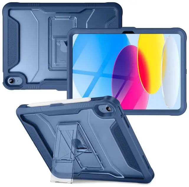 VIKESI for iPad A16 11-inch 2025 and iPad 10th Generation 10.9 Inch Kickstand Protective Case 2022,Shockproof Cover with Matte Frosted Back - Navy Blue