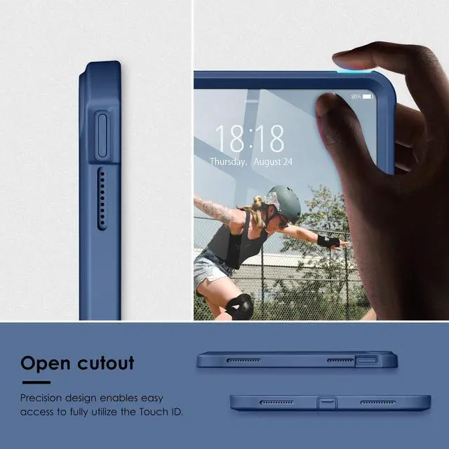• [Three-in-One Cover]:Offers the difference by Ultra Hybrid protection Design, Hard Matte Frosted PC back provides strong support, Anti-Fingerprint and Anti-Scratch.and Soft TPU frame protects your iPad from shocks, drops, and impacts. Front Screen Protector cover prevents scratches without compromising sensitivity.