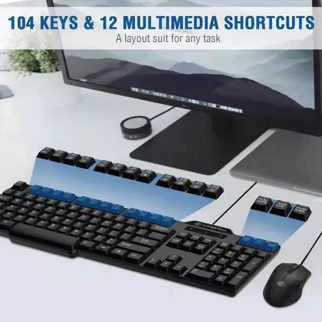 Full-size Layouts & Comfortable TypingThe full-size wired keyboard with a folding holder can keep your hands in a more comfortable typing position, which helps reduce hand fatigue. Anti-slip rubber pads at the bottom of the keyboard make it firmly in place when fast typing;