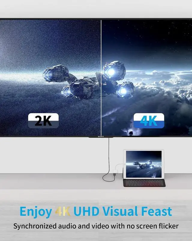HDMI 2.0 Cord: The USB-C to HDMI Adapter lets you connect your USB-C or Thunderbolt 3 (USB-C)enabled iPhone 16, Mac and iPad Pro to a HDMI display, while also connecting a standard USB-C charging cable. Crystal-clear and vibrant 4K@60Hz resolution backward compatible for 1440P@60Hz and 1080P@120Hz. Instantly mirror or extend UHD content from your Type-C phone, tablet, laptop, and desktop computer to larger displays like monitors, TVs, and projectors ^^ Ultra HD 4K HDMI video output and effortless 100W fast charging: HDMI to USB C connects your Type-C phone, tablet, laptop, and desktop computer to your TV, monitor or projector in up to 4K UHD (3840x2160@60Hz) resolution. 4K USB C to HDMI Adapter supports both video and audio output. USB C to HDMI built-in 100W USB-C PD port provides fast device charging to ensure your laptop, tablet or phone is powered up quickly, allowing you to charge your iPhone 16 while mirroring or extending the screen.