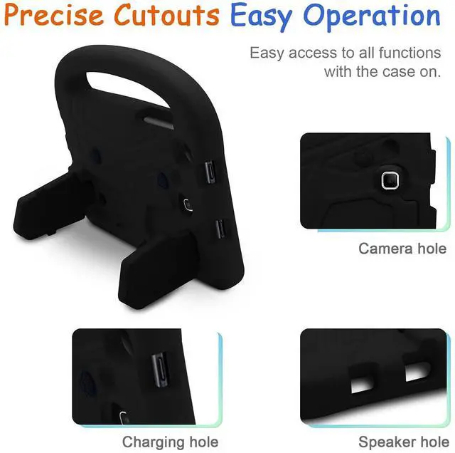 Features: Shock ProtectionMade of sturdy kid-safe EVA foam to protect your tablet from daily bumps and scrapes. Precise CutoutsCustomized openings allow to access to all ports, buttons and cameras without removing the case. Top HandleLarge handle is designed for an easy and comfortable grip, and convenient for carrying outdoors. Stable StandBuilt-in 2 folded bases to prop your tablet up on the desk for hands-free horizontal viewing or typing.