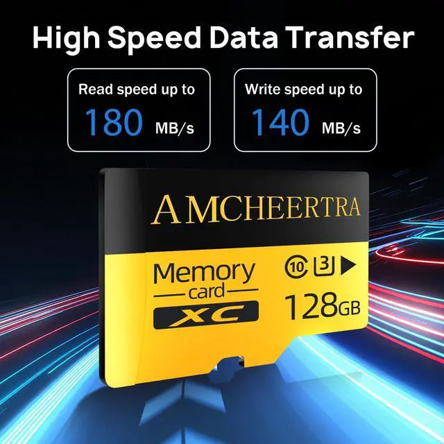 World: This 128GB High Speed MicroSD card is widely compatible with digital devices, for example Smartphones, Action Cameras, Computers, Drones, Dashcams, Monitors, Gaming Consoles, and so on. This MicroSD card is the digital devices' perfect companion. ^^ Sustained fast read and write speed: Read speed up to 180MB/s, write speed up to 140MB/s. UHS-I, U3, C10, and A2, ensuring quick loading, smooth recording, and responsive app usage. ^^