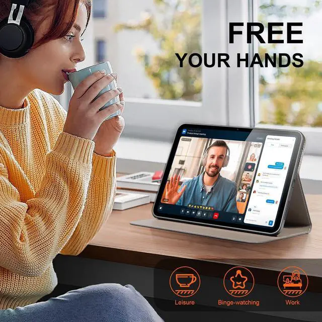 ^^ Multi-Angle Stand: Features adjustable viewing angles for typing, watching videos, or making presentations on any flat surface.
