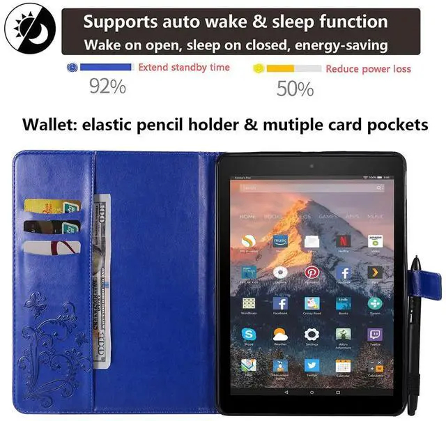 Pockets: Elastic pencil holder for your stylus/pen; book wallet sleeve folding case has card slots convenient for storing your cards, cash, photos. 6.