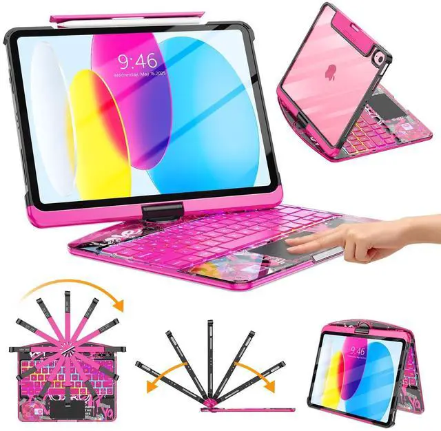 Adjustable Viewing: Effortlessly pivot your iPad 360 and choose from 5 tilt angles for typing, sketching, streaming, or video calls. Perfect for work, creativity, and entertainment on the go ^^ Stylish Transparency with