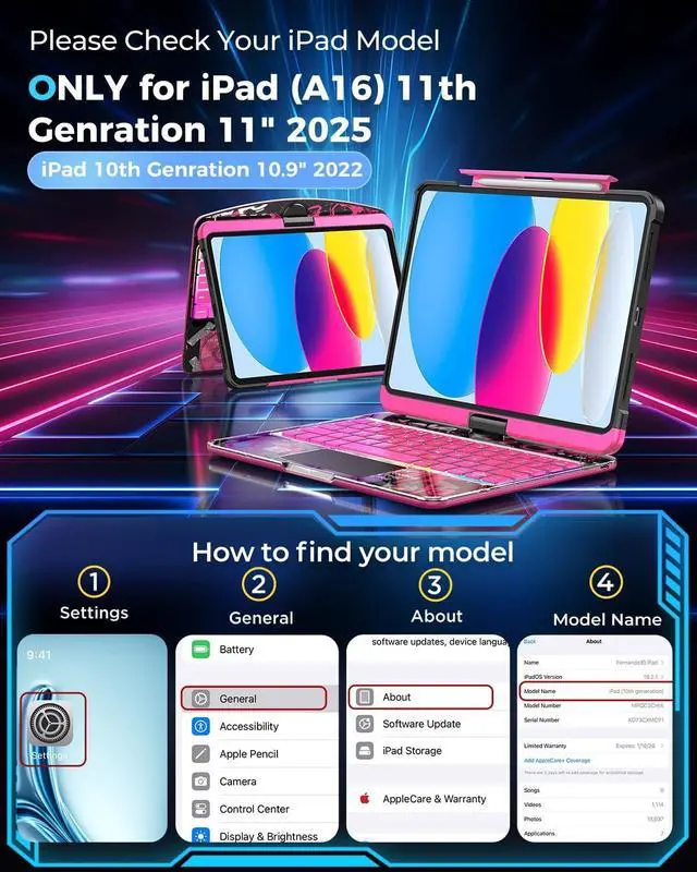 Generation 10.9" 2022 (Model: A2757/A2777/A2696). Please ensure the model number before making your purchase as it is not compatible with any other devices. Christmas gifts for women mom wife girl sister teens teacher ^^ 360 Rotating Stand &