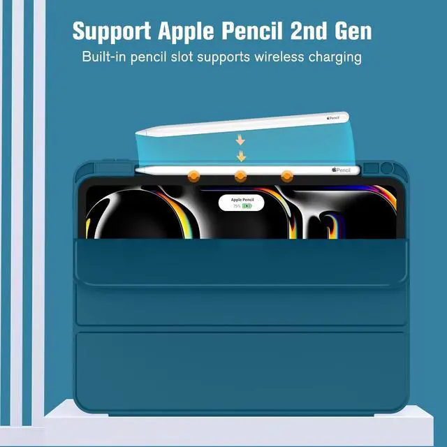 [Supports Pencil Pro and Pencil (USB-C)] This iPad Pro case fully supports Pencil Pro with a recessed side groove for magnetic charging and a magnetic clasp to keep your Pencil secure.