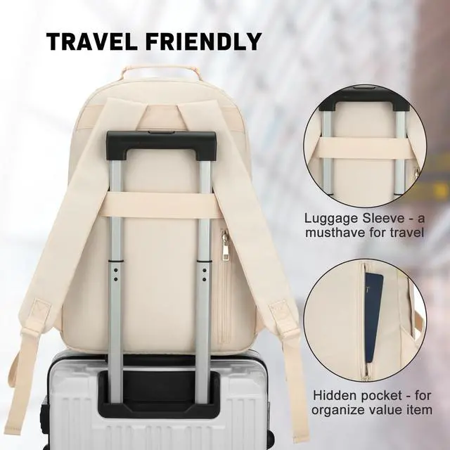 Mega main compartment&front compartment: Books/electronics/clothes and More. ^^ Practical & ComfortableMade of water-repellent, high-density polyester with sturdy zippers, this laptop backpack reinforced construction for durability. Additionally, it is equipped with a luggage strap, allowing you to secure the backpack to the handle of a suitcase, making your journey more relaxed and enjoyable. ^^ Versatile Backpack For Teens & Adults, From Class to Travel!