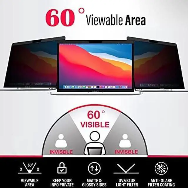 PRIVACY PROTECTION: Laptop screen privacy filter blocks side views from potential prying eyes, ensuring your data remains confidential.
