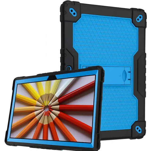 Doemoil Case for 10 inch Pritom M10/quntiCO Y10/Digiland DL1036/Gateway/Voger priorpad X100 /VUCATIMES N10/ Fivahiva 10 inch Tablet Case with Kickstand Rubber Hybrid Protective Case (Black/Blue)