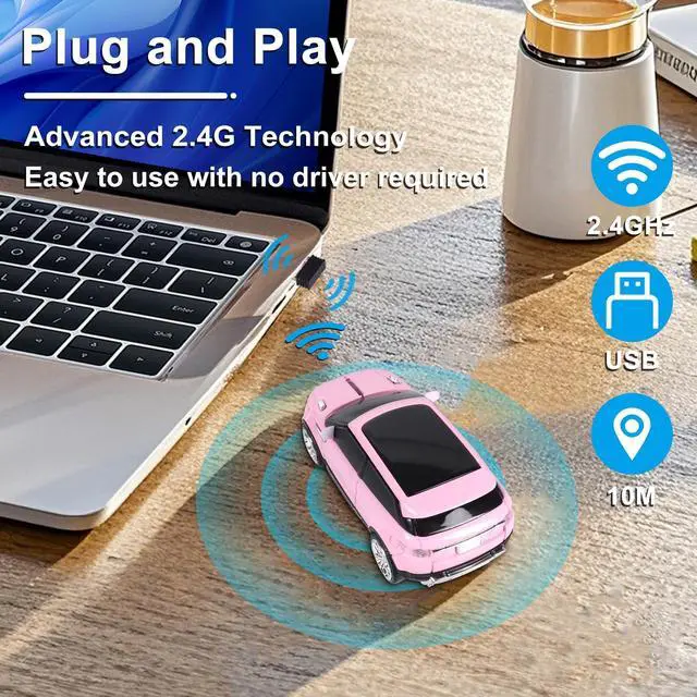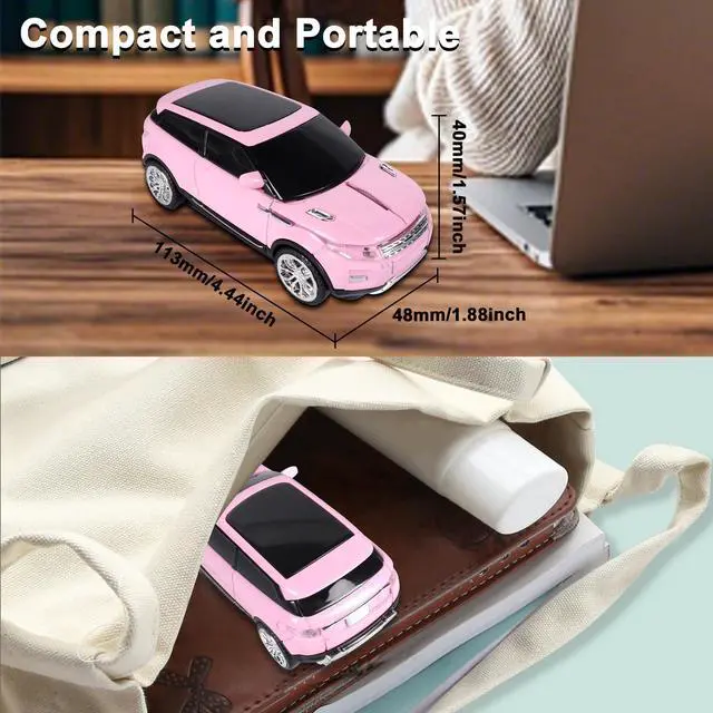 Stylish Car Shaped Mouse: Combining a computer mouse with a car design, this wireless car mouse features blue headlights, a fashionable and stylish look, and a compact, portable design. Its unique design offers a distinctive wireless mice that attracts attention. When not in use, this car mouse for computer can also serve as a desktop decoration. This car shape wireless mouse makes the perfect gift for friends or family.