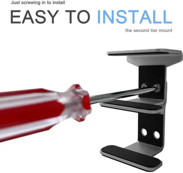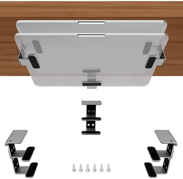 EASY TO INSTALL: Place the laptop in the holder and mark the brackets locations under the desk. place each bracket to the marked locations. Secure each bracket by screws. Misalignment design on both sides allows your drill to easily through the mount to install.