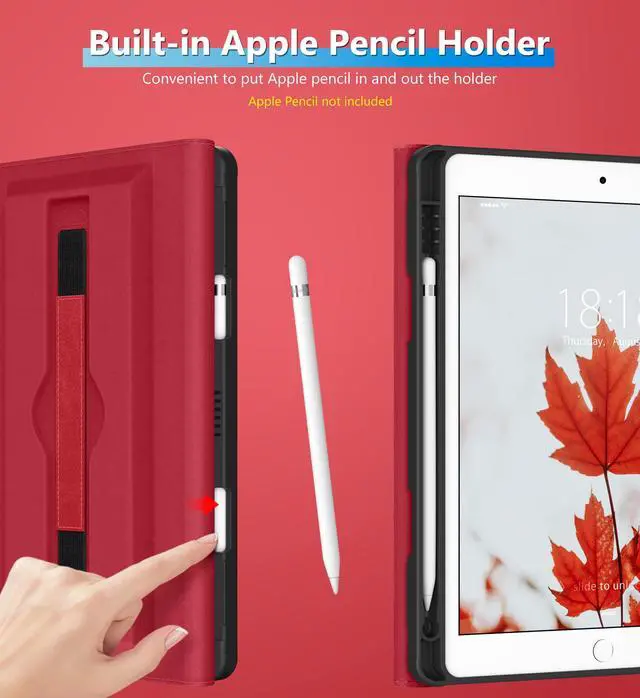 Please Note: Apple pencil not included ^^ Exterior is made of premium synthetic leather, lined with microfiber provide full protection perfectly protects the iPad 9th Gen from scratches ^^ Auto Sleep/Wake features, automatically wakes up the device or turns it off. Features dual front pockets document card pocket to keep notes, cash, and cards