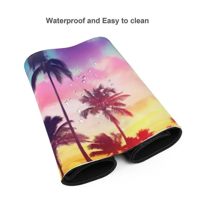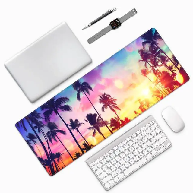 Famame Laptop Mouse Pad Colorful Sunset Palm Trees Desk Mat with Stitched Edges 31.5X 11.8 inch Non-Slip Large Keyboard Rubber Writing Table Mat for Office Home