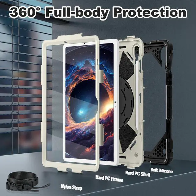 CompatibilityDesigned for samsung galaxy tab s10 lite/s10 fe 10.9 inch 2025(SM-X400/ X406B/SM-X520/X526B/X528U)&samsung galaxy tab s9 fe 10.9 inch 2023(SM-X510/X516B/X518U)&samsung galaxy tab s9 11 inch 2023(SM-X710/X716B/X718U). Please check your tablet to avoid the incorrect model number. ^^ 360 Rotating Stand & Folding HandleGalaxy tab s10 fe/s9 fe case with a multifunction handle that also rotating 360 and folds 180 to give you multiple angles between 30-80 degrees of horizontal or vertical orientation for easy viewing, typing or drawing. ^^ Pencil Holder & Adjustable Shoulder StrapSamsung tab s9 fe case with pencil holder. Also offers adjustable shoulder strap, allow you use or carry much easier, perfect for a variety of people and occasions.