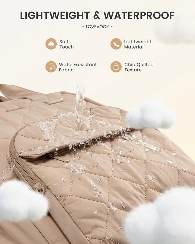 Cushioned & Secure Laptop ProtectionPadded laptop compartment with shock-absorbing foam + quilted lightweight straps reduce shoulder strain while keeping your device safeperfect for crowded commutes or daily campus hustle. ^^ Stay Organized in SecondsSmart multi-pocket design includes a dedicated laptop sleeve, accessory slots, side water bottle holder, and hidden anti-theft pocketno more tangled cords or frantic digging! ^^ Compact Outside, Spacious InsideRoomy interior fits a laptop, textbooks, a travel umbrella, and moreideal for work, school, or weekend getaways ^^ Breathe Easy, Carry ComfortablyVentilated quilted back panel wicks away heat and sweatstay cool during summer walks and comfortable during winter travels.