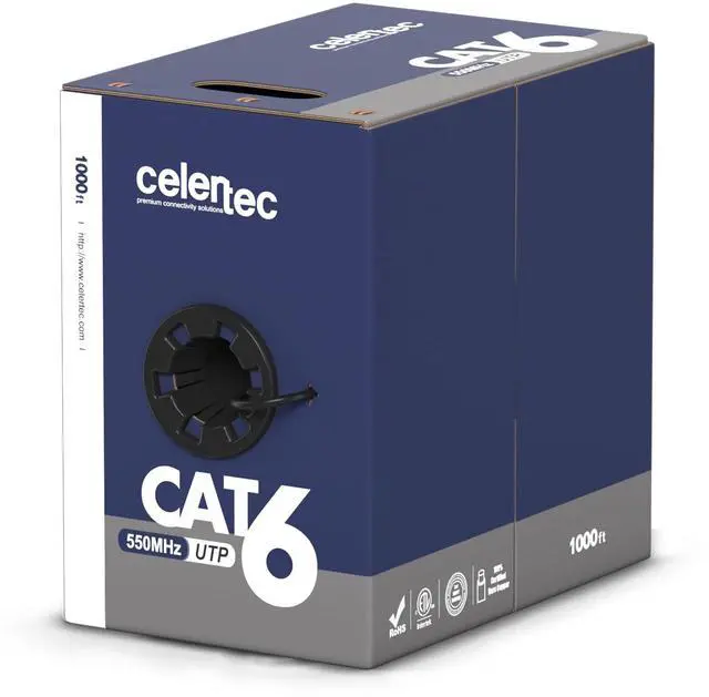 2, which requires pure bare copper wire in communications cables. Preserves more reliable signal transmission along with better conductivity. ^^ INDOOR USE. The Cat6 cmr cable is for indoor installation at riser spaces. The flame retardant jackets help reduce the spread of flame between floors, which is safe for use. ^^ AVAILABLE IN PULL BOX FOR EASIER INSTALLATION. Sequential foot marked jacket help you to track the remaining amount of cable left in the box. ^^ CERTIFIED &TRUSTWORTHY. All celertec cables are designed and tested to meet or exceed ANSI TIA/EIA 568-C.