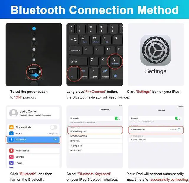 ^^ Detachable & Adjustable: Designed to stand your iPad hands free so you can focus on work, reading, watching videos, typing like on normal computer laptop. Innovative magnetically detachable wireless keyboard design makes it easy to use (the connection range is up to 10 M). And iPad protective case can be adjusted to different angles according to your needs, provides more comfortable feeling of use.