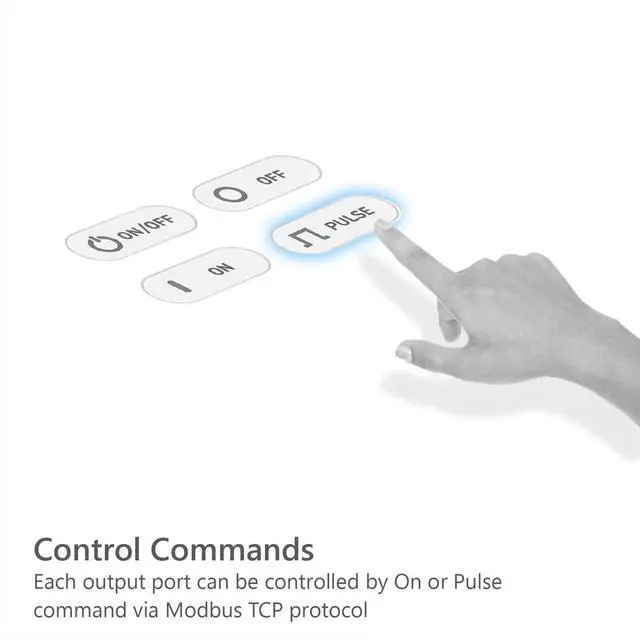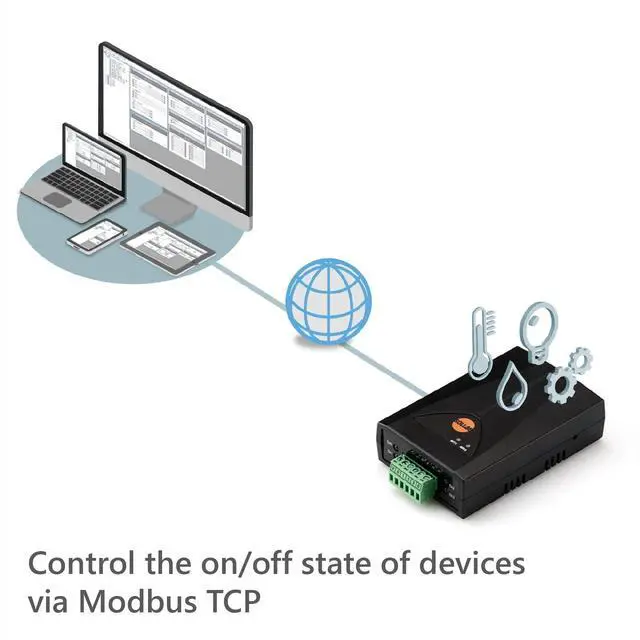 2 digital output ports (Relay): normally open and normally closed ^^ Modbus TCP protocol ^^ Multiple TCP connections (Max. 4 connections simultaneously) ^^ Relay can be controlled on/off or pulse command ^^ Device can connect to Android/iOS apps, Windows software, HMI devices, etc.