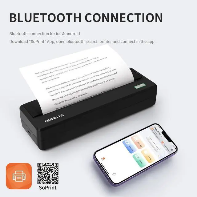 Thermal Inkless Printing: No longer need ink cartridges, Print recipes, forms, letters, assignments, study materials, and travel documents. Please notice this printer use thermal printing paper, include one roll of thermal paper in the printer ^^ 300DPI resolution print clearly. Can print in your car, during business trips, or any outdoor occations. Print contracts, office documents, inventory lists, or other materials. 2600mah battery for long time use ^^ Bluetooth wireless portable printer, easy to download SoPrint APP from Google play or ios APP store. The A4 portable printer supports bluetooth connection for iOS and Android. Supports USB Type-C connection for Windows 7&above and MacOs ^^