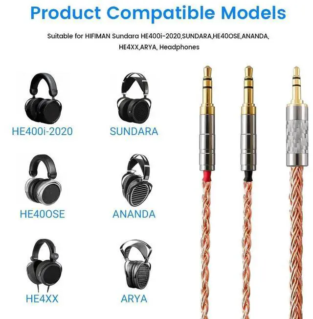 This cable only Compatible with Hifiman Sundara, Ananda, Arya, HE400SE, Deva-Pro, HE4XX (2 x 3.5mm Version), HE-400i (2 x 3.5mm Version) headphone. Must Confirm Your Headphone is The Model with Dual 3.5mm port