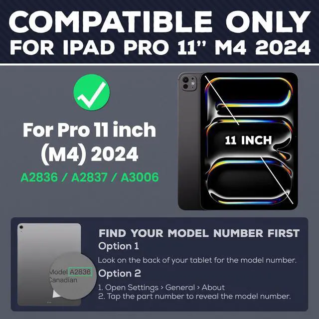 Generation (M4) 2024 (Model: A2836/ A2837/ A3006). Not compatible with any other devices. Please check the model number on the bottom of the iPad before purchasing ^^ New Upgraded