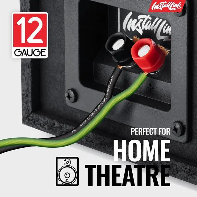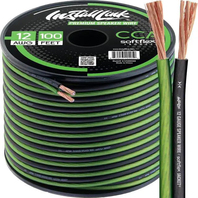 PREMIUM SPEAKER WIRE [ Frosted Green/Black ^^ 100-feet ( 30.5 m) ^^ 12 Gauge ] - Featuring a double conductor, this stranded wire is constructed from high-grade copper and aluminum. It is perfect for achieving outstanding audio performance, exceptional flexibility, easy stripping and great polarity identification. ^^ COPPER-CLAD ALUMINUM (CCA) - Made with an aluminum core and coated with a layer of copper, this cost effective speaker wire provides great conductivity with minimal signal loss. ^^ PERFECT FOR - Designed to provide adequate performance for any home theater system, car audio speakers or professional studio.