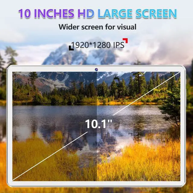 The powerful processing speed and upgraded 64GB tablet means you can do more and keep more of what you love: watch videos, play games, read eBooks and more. (With eye protection mode) ^^ EASY TO USE User friendly interface, no bloatware, no unexpected ads, connect to WiFi and the tablet can be used directly. Perfect for home, office and school use. 10 inch tablet can be turned into 2 in 1 laptop by connecting a wireless keyboard using the Bluetooth function. ^^ CLEAR TOUCH SCREEN 10.1 inch large clear screen, 1920x1200 resolution support and built-in dual speakers, you can enjoy vivid visual effects when watching movies. Dual front and rear cameras allow you to switch seamlessly between video chat and work meetings. ^^ LONG BATTERY LIFEThe excellent tablet has a built-in 6000 mAh high capacity battery. One full charge can support up to 8 hours of online video, 15 hours of e-reading or 5 hours of online gaming, powering you through a full day of fun. Standby time is often up to 300+ hours. *Battery life may vary depending on network environment, usage patterns and other factors. ^^ IDEAL CHOICE FOR GIFTFEONAL Android tablet is definitely the best choice for Christmas or employee benefits.
