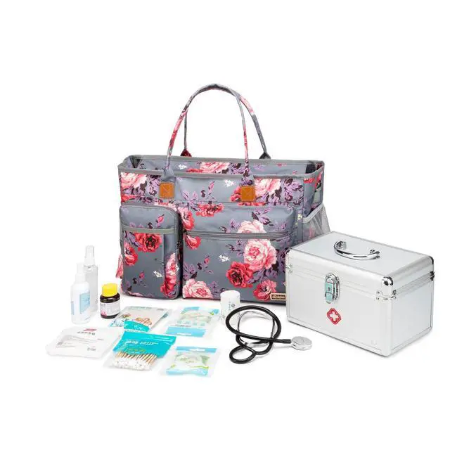 Professional medical nurse bag: multi pockets to store gauze, tourniquet or anything you want. 3 slots for pen, thermometer, tuning forks and etc; 2 insulated pockets help keep food drinks' temperature ( hamburger, hot coffee or cold cola) when you busy or for sanitizer, bottles, umbrella, etc.